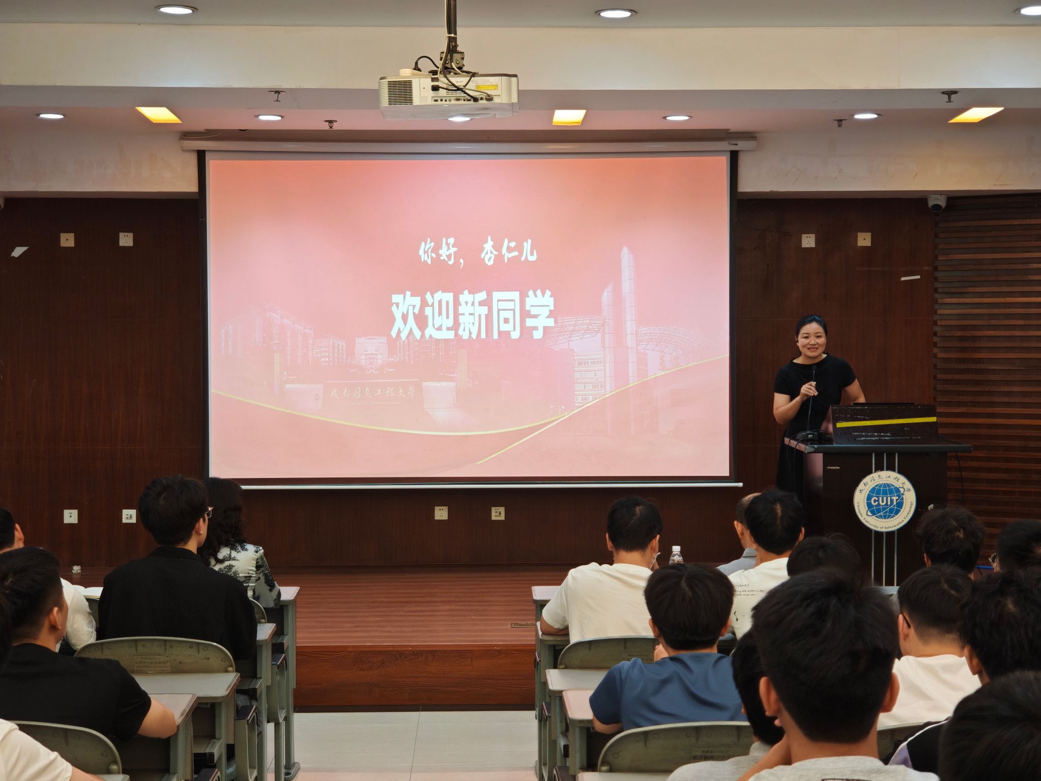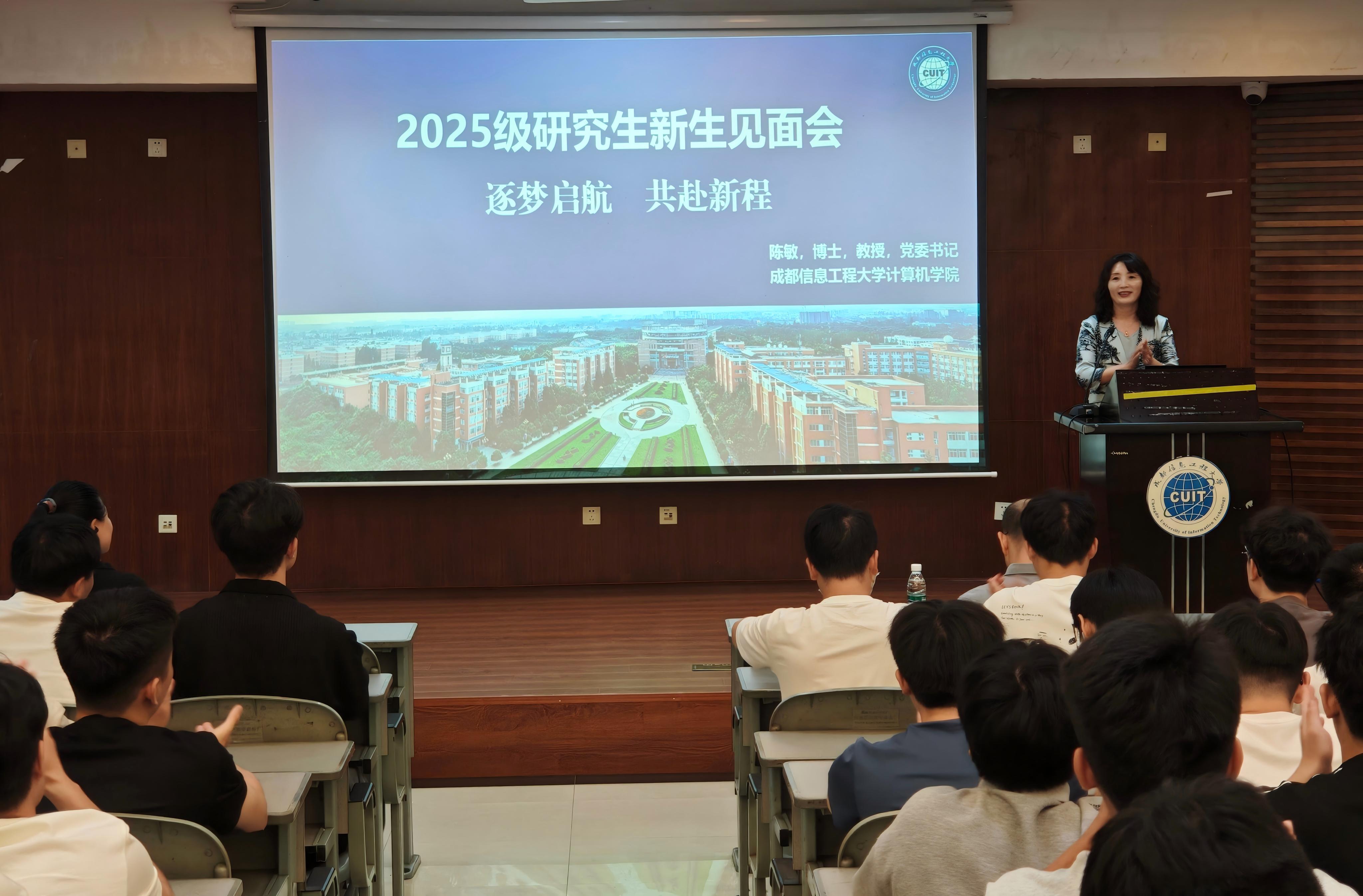 陈敏首先代表学院致欢迎辞,回顾学校发展历程,重点介绍金沙集团186cc在学科建设、师资队伍与科研成果等方面的显著成绩。她详细阐释学院“产学研用”融合的人才培养特色,并以往届毕业生发展为例,鼓励新生尽早树立明确的学习与发展目标。